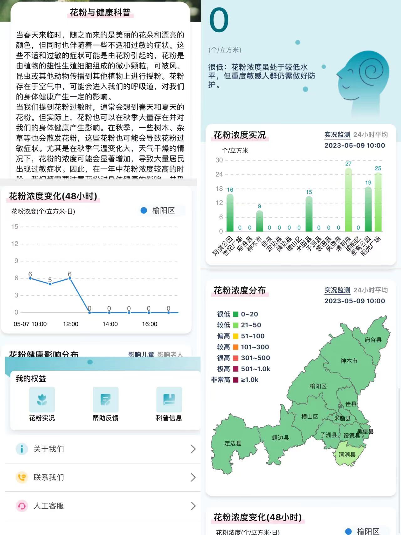 4月底,榆林市气象局微信公众号“花粉播报”功能上线,用户关注后可查看当前时次的全市16个站点的花粉浓度实时监测数据、花粉浓度全市分布图以及各站点的过去48小时监测数据变化情况以及科普知识等相关内容,并在榆林气象微博、天气预报影视节目每日三次发布全市花粉浓度监测情况。目前,榆林市气象局已启动基于花粉自动监测设备的花粉浓度预报研发工作,建立花粉预报模型后将提供适应榆林本地的花粉浓度预报,为本地过敏人群做好过敏防护提供服务。